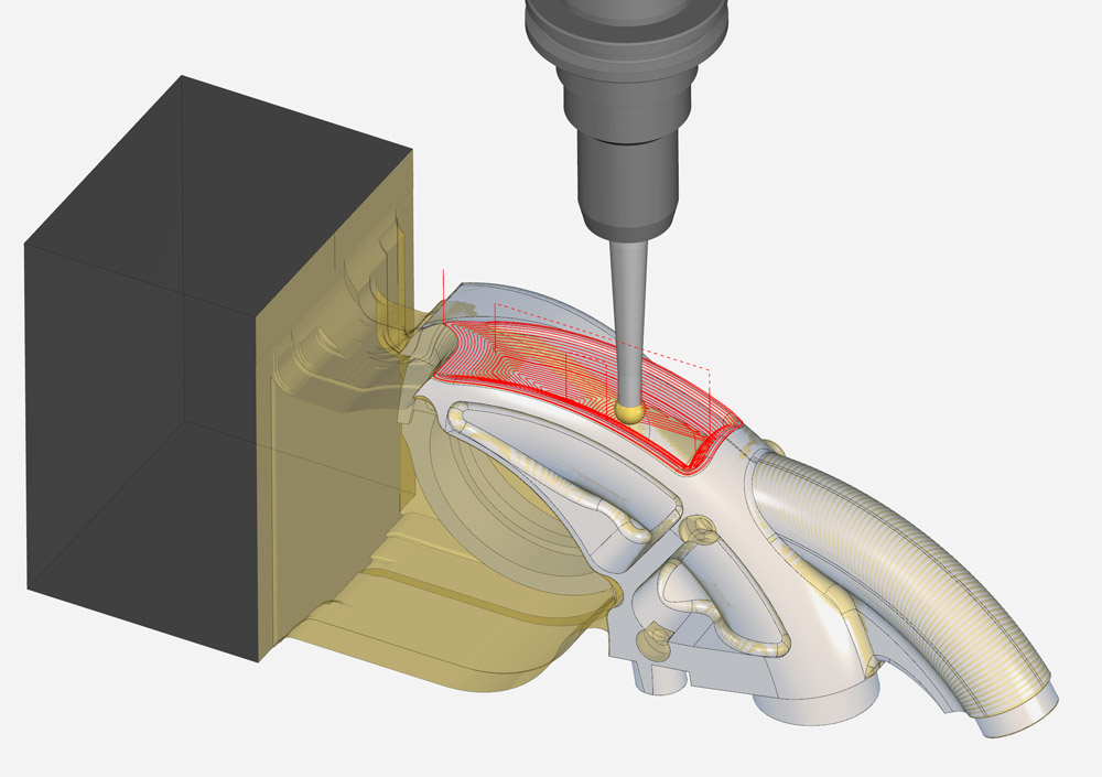 - Parametric Finishing: Following the parametric flow lines of a selected face on the part